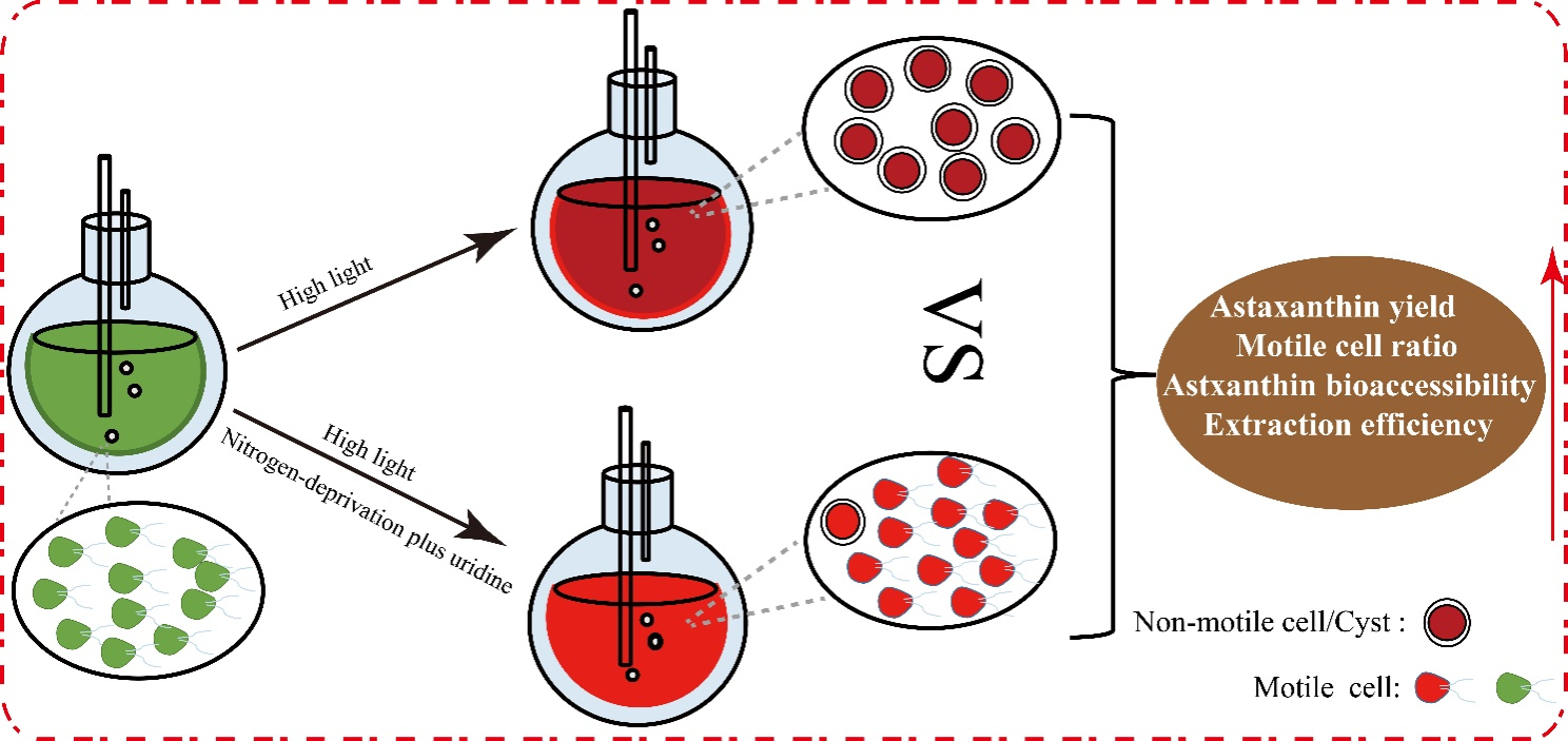 植物生理生化研究团队在国际Top期刊《Bioresource Technology》(IF=11.4,JCR1区,中科院大小类1区TOP)上发表题目为“The combination of uridine and nitrogen-deprivation promotes the efficient formation of astaxanthin-rich motile cells in Haematococcus pluvialis”的研究论文。