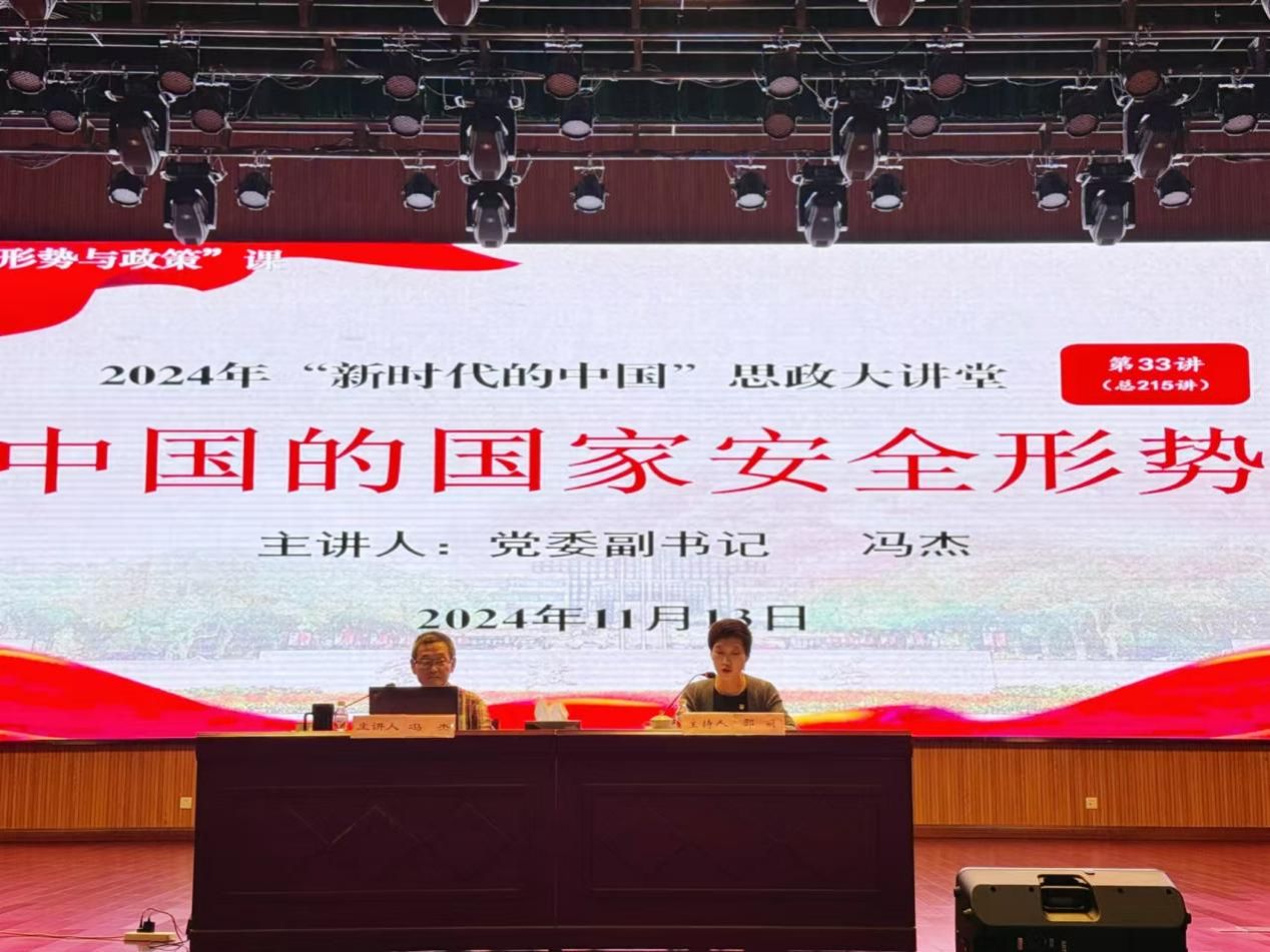 冯杰表示,当今世界正在经历百年未有之大变局,实现中华民族伟大复兴正处于关键时期,战略机遇伴随着风险挑战,国家安全的重要性日益突显。他从国土安全和军事安全维度,结合中国的外交理念,以及国际局势的历史变迁,深刻阐释了我国的总体国家安全观,深刻揭示了国家安全与个人命运、国家发展与民族未来之间的紧密联系,让广大师生在风云变幻的国际局势中,更加清晰地认识到自身肩负的责任与使命。