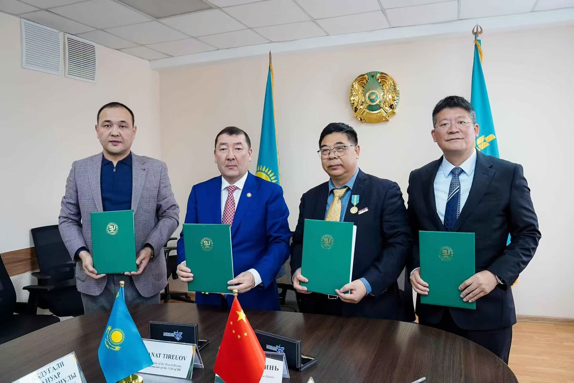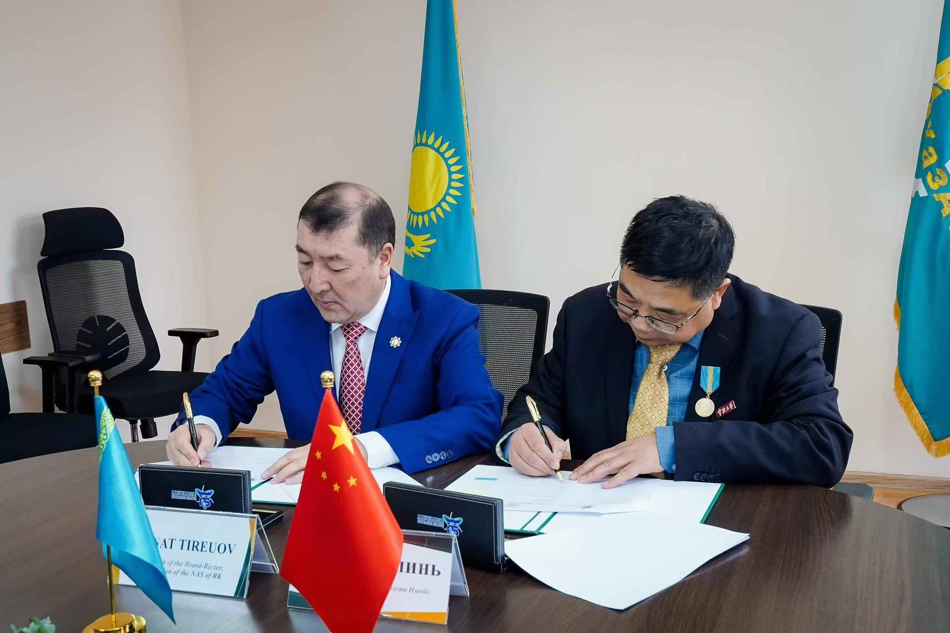 15日上午的集中座谈中,塞弗林哈萨克农业技术大学校长Kanat Tireuov教授和王春琳教授分别就各自学校情况做了介绍。与会人员就如何开展以“盐碱地利用与养殖”为重点的水产养殖领域的合作研究展开充分交流,参加交流的还有宁波铁大大供应链管理有限公司董事长邵一峰和中亚海鲜养殖研究院院长。随后,两校签署了合作协议,将在学术合作、科研创新以及师生交流方面开展广泛合作。双方学校、公司和研究院签署了四方协议,拟成立中哈水产养殖联合实验室。