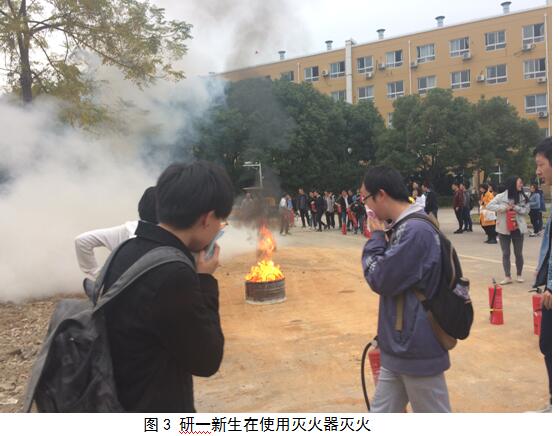 活动于14点50分在包玉书科学楼12号楼开始。首先在1楼报告厅由潘道东副院长对2017级研一新生进行了安全意识动员教育,强调了实验室安全的重要性,提醒学生们安全无小事,要防患于未然。然后,邀请了保卫处徐作义老师作了题为“珍爱生命,远离火灾”的讲座报告,详细讲解了火灾引发的原因、类型、灭火的种类和特点,示范了灭火器的使用方法,同学们从中了解学习到如何在实际生活中面对火灾逃生自救互救。接下来,在杨锐老师的指挥带领下,组织学生按照逃生路线进行了从12号楼里逃生疏散的演练,分为拉响警报、报警、疏散等演练步骤。最后,在12号楼附近的空地上师生们进行了灭火器灭火练习。演练使大家得到锻炼,一旦发生事故,懂得应该做什么、能够做什么、如何去做等。