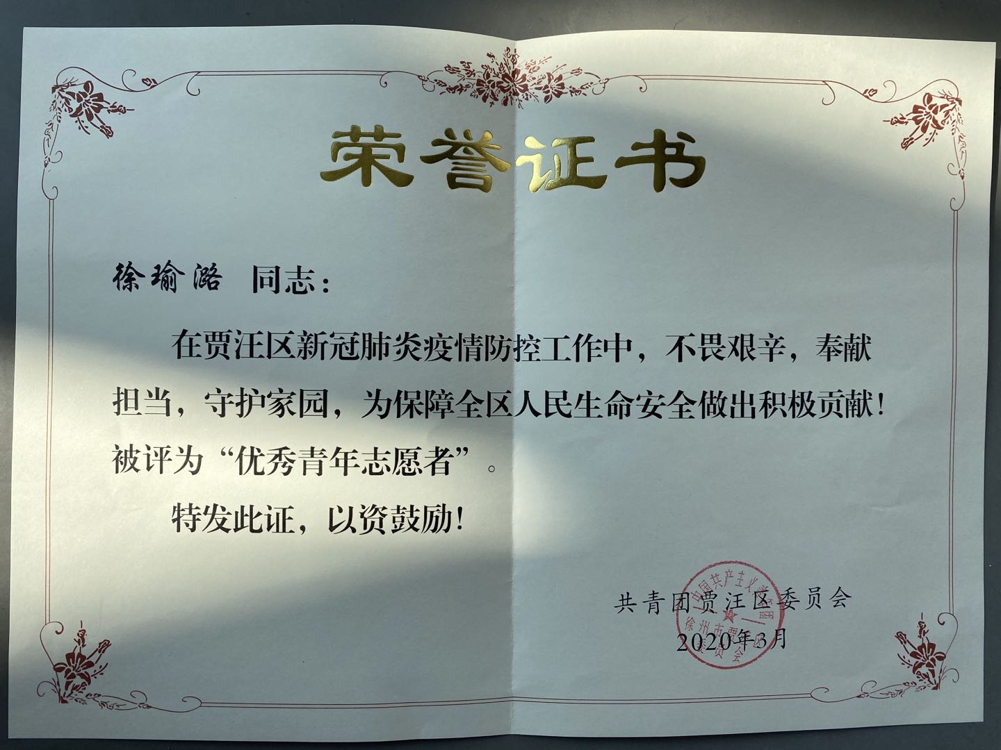 收到共青团徐州市贾汪区委员会寄来的《致防疫志愿者的感谢信》、《荣誉证书》以及表彰文件,感谢和表彰成人漫画