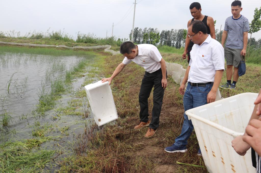 蔡真亮书记在张庄基地放养青蟹