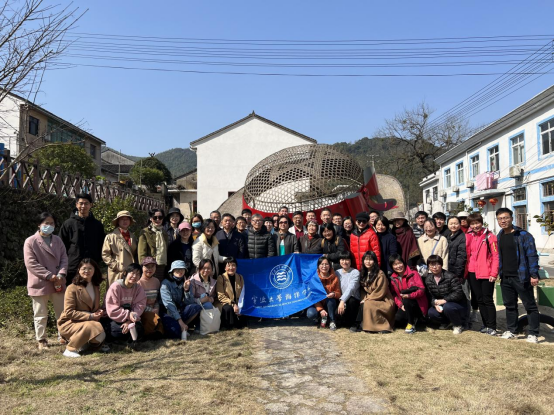 中午时分,已是暖阳高照,车至活动的第一站——宁波网红艺术村——城杨村。该村东邻塘溪,西至横溪,四面环山,风景秀丽。在中国人民大学艺术学院丛志强教授带领的研究生团队“设计推动乡村发展”课题,经过半年多时间的努力,激发了村民们艺术创作的激情,把偏僻“三无村”蝶变成富有艺术味的“网红村”。一山、一寺、一树、一桥、一道、一溪、一庙,“七个一”成为村民引以为傲的风景。已成为目前宁波人气飙升的网红美丽乡村!