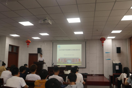 在竺银康楼报告厅举行了2022年暑期社会实践出征仪式,学院辅导员以及各社会实践团队学生代表出席仪式。