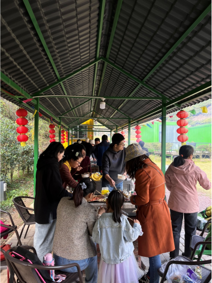 午餐时分,大家在景点外围支起炉灶自助烧烤,在缭绕的烟幕中客串、交流、酣吃畅聊。随后,走栈道,爬山坡,一路欢歌笑语,尽享徐凫岩远近高低不同视角的美景。下午茶歇时光,在一张张天幕下,大家品茗畅叙,在和睦欢畅的氛围中感受工作之余同事间的温情。