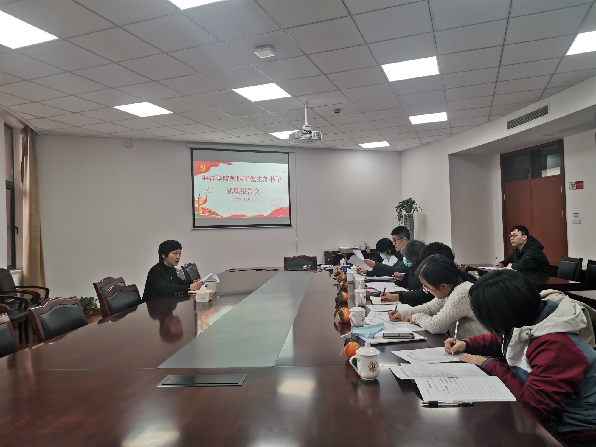 党委召开2022年度教职工党支部书记述职报告会。学院党委邵丽书记、六位教职工支部书记、组织员等参加了报告会,会议由邵丽书记主持。