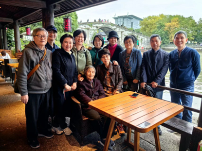 出发前往苏州拙政园,抵达苏州,恰逢秋雨刚落。天气虽显阴冷,但褪不去老教授们对苏州园林风景的热爱。一把小伞,相互搀挽,在烟雨中,细细品味园林之美。