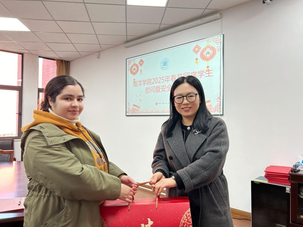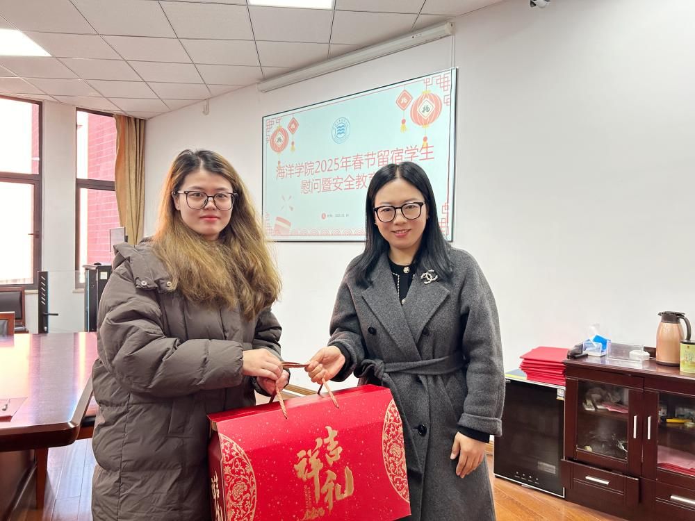 会后,张乐老师代表学院向同学们送上新年大礼包。声声问候,句句祝福,饱含着学院对学子的关心和爱护,让留校学生感受到家的温暖和节日的氛围。同学们纷纷表示感谢,并承诺留校期间会配合好学院的各项管理工作,把学院的关爱转化为提升自我的强大动力。
