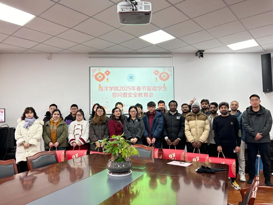 在竺银康楼303会议室举行了新春留校学生慰问暨安全教育座谈会。学院党委副书记张乐、学工办相关老师向20余位新春留校的中国籍学生以及留学生送上祝福。