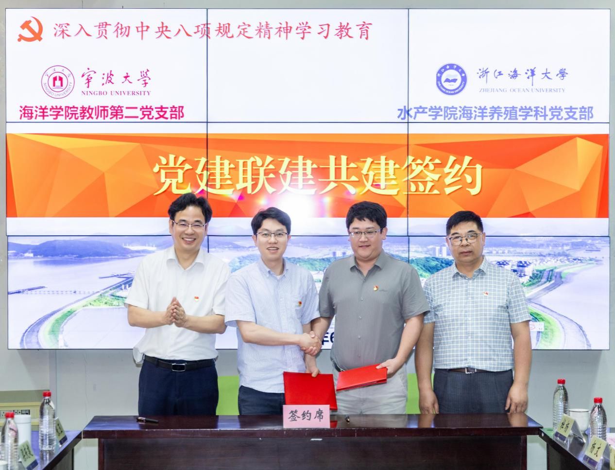 血脉相连的二十年工作历程,强调要以党的二十大“实施科教兴国战略,强化现代化建设人才支撑”为指引,赓续由著名海洋水产专家李星颉先生创校的初心使命。从1958年“舟山水产学院”的“开船捕渔”,到新时代“造船护鱼”的生态智慧,他深刻阐释了我国海洋教育从“向海图存”到“向海图强”的史诗跨越,号召两院聚焦“海上牧场”“蓝色粮仓”等国家战略需求,打造党建与科研“双螺旋”协同发展新范式。在现场庄重的政治仪式中,双方党支部书记签署《党建联建合作协议书》,互赠习近平著作《习近平总书记教育重要论述讲义》,以“红色纽带”构筑起科教协同创新的坚实堡垒。