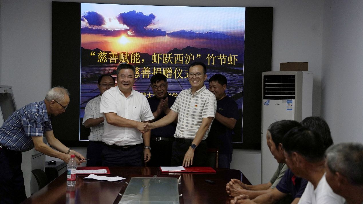 )水产种业创新研究院执行院长王春琳分别做了总结发言,对养殖团队表示衷心感谢,认为此次虾苗捐赠不仅为特殊群体发展水产养殖产业、实现稳定增收提供了有力支持,也展现了高校服务社会、科技反哺产业的责任与担当。受捐赠的养殖户们也纷纷表示,将珍惜机会,用心做好养殖工作,力争把捐赠的虾苗培育为增收致富的“新希望”。