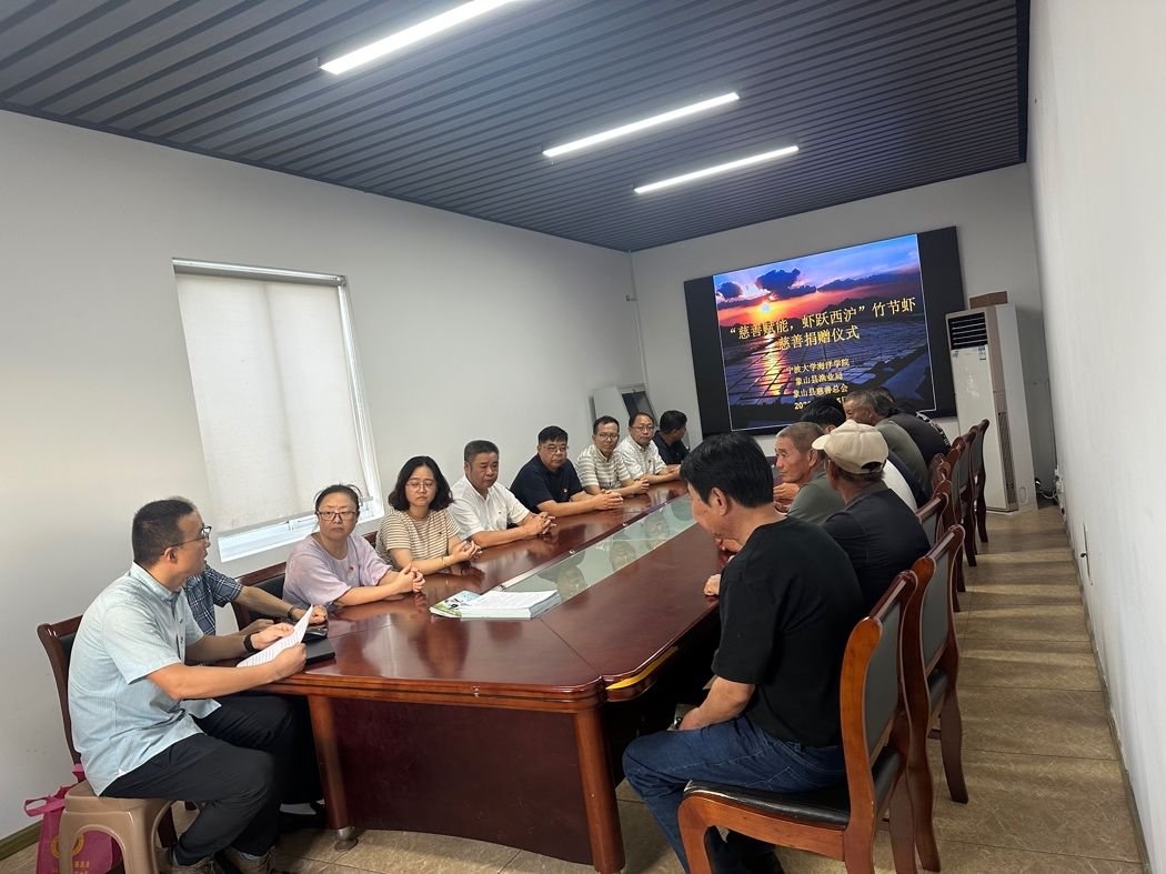 领导、教工第四党支部党员代表、受赠养殖户代表等出席捐赠活动。
