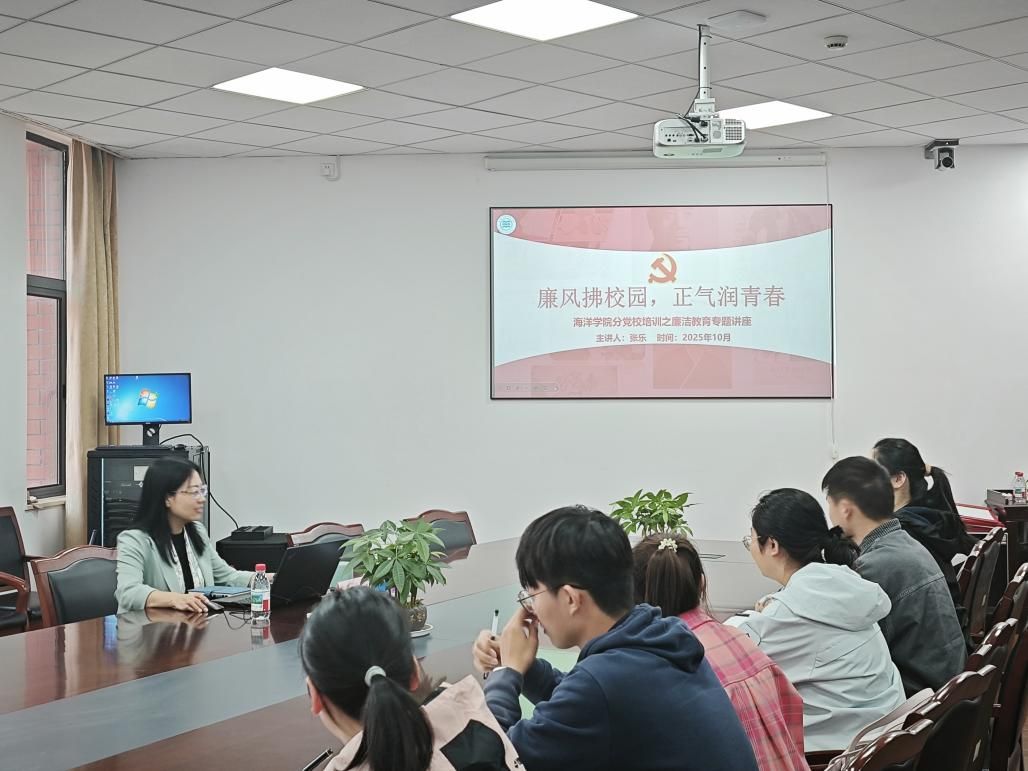 在竺银康楼303会议室举办“清风拂校园,廉洁润人心”专题党课。学院党委副书记、纪委书记张乐主讲,分党校发展对象班全体学员参加。