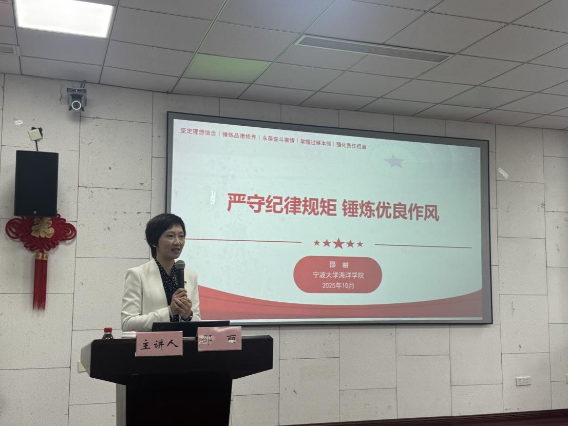 课程最后,邵丽结合党的二十届四中全会精神学习要求,鼓励同学们关注时政热点,通过权威媒体解读等方式深化学习效果,将个人发展与党的事业紧密结合。她勉励海洋学子身处优秀集体,更要以高标准自我要求,期望全体学员都能成为务实笃行的行动者,将党组织与学院的期许内化于心、外化于行,在未来各个赛道上让共产党员的身份闪闪发光。