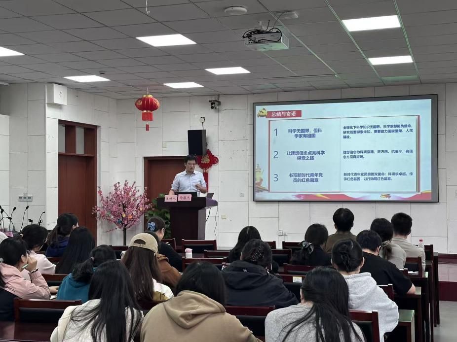 在互动环节,徐嘉杰提出现实情境问题:“若在国外遇到对中国的误解,应如何应对?”引发同学们深入思考。他结合自身经验给出建议:首先要保持“冷静、理性、友善”的态度,避免情绪化对抗;其次应学会“适时引导、适度留白”,若对话陷入分歧,可礼貌结束并真诚建议对方“到中国走一走,与不同领域的人聊一聊”,用事实代替争辩;最重要的是,在海外交流中始终展现中国人“开放、包容、务实”的形象,以日常言行传递中国文化,促进跨文化理解。“一次真诚的交流,可能比十次辩解更有力量。”他的分享让同学们深刻意识到,青年科研党员不仅是技术研究者,更是国家形象的“代言人”。
