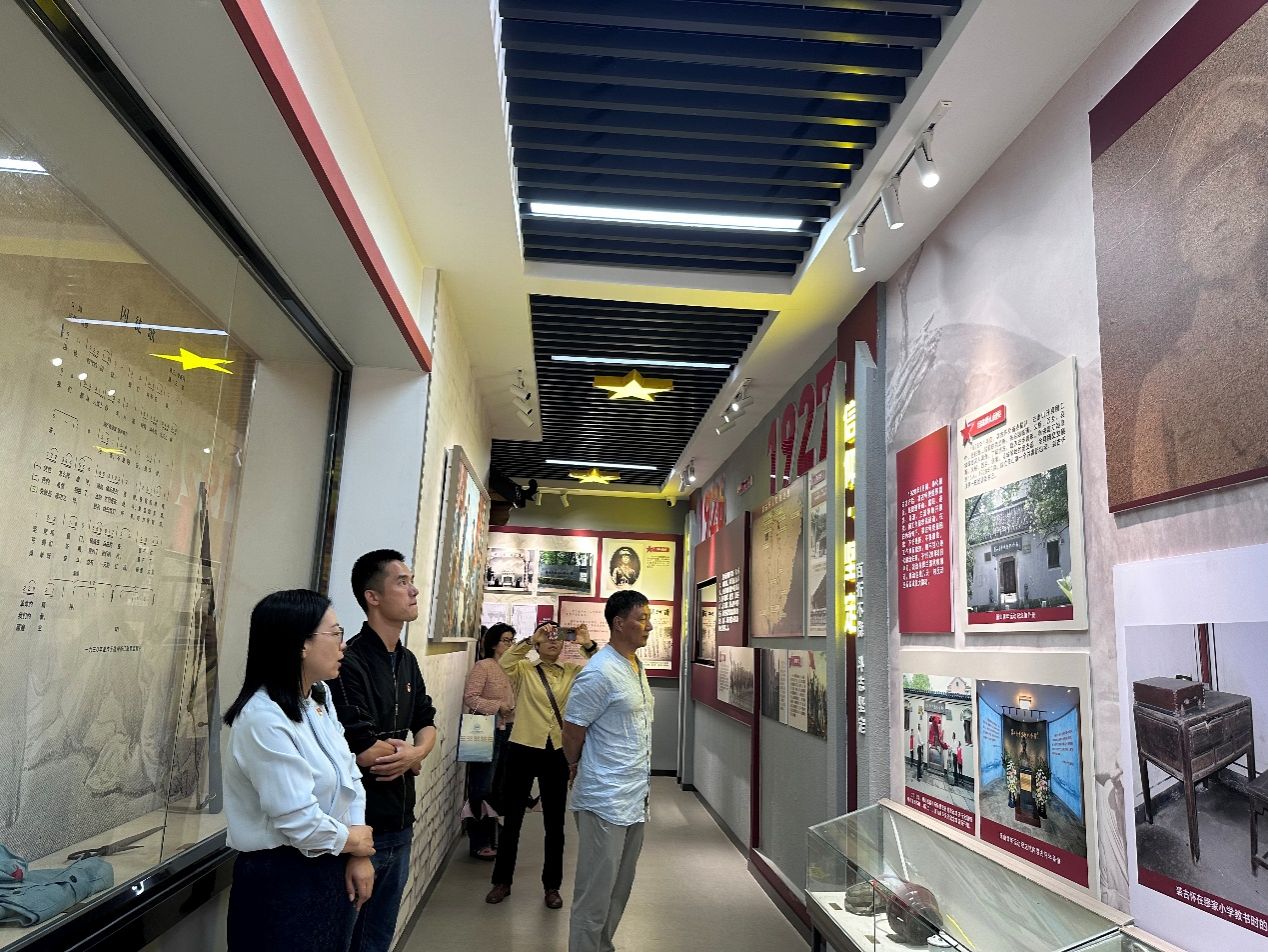 随后,党员们前往大埠村的裘古怀烈士故居。这座占地1110平方米的纪念馆通过图文、视频和实物,全景式呈现了裘古怀从黄埔军校学员到北伐“虎胆英雄”的传奇人生。在狱中斗争展区,党员们驻足观看裘古怀写下的遗书手迹,“希望党要百倍地扩大工农红军”的呐喊穿越时空,震撼着每一位参观者的心灵。
