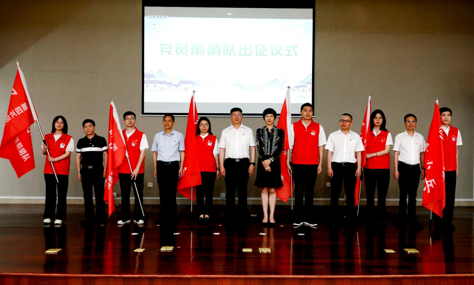 会上,邵丽与三门县科学技术局党组书记、局长沈显锋签订了党建联建合作协议,同时还作为特邀嘉宾为三门县片组党员前哨队出征队授旗。