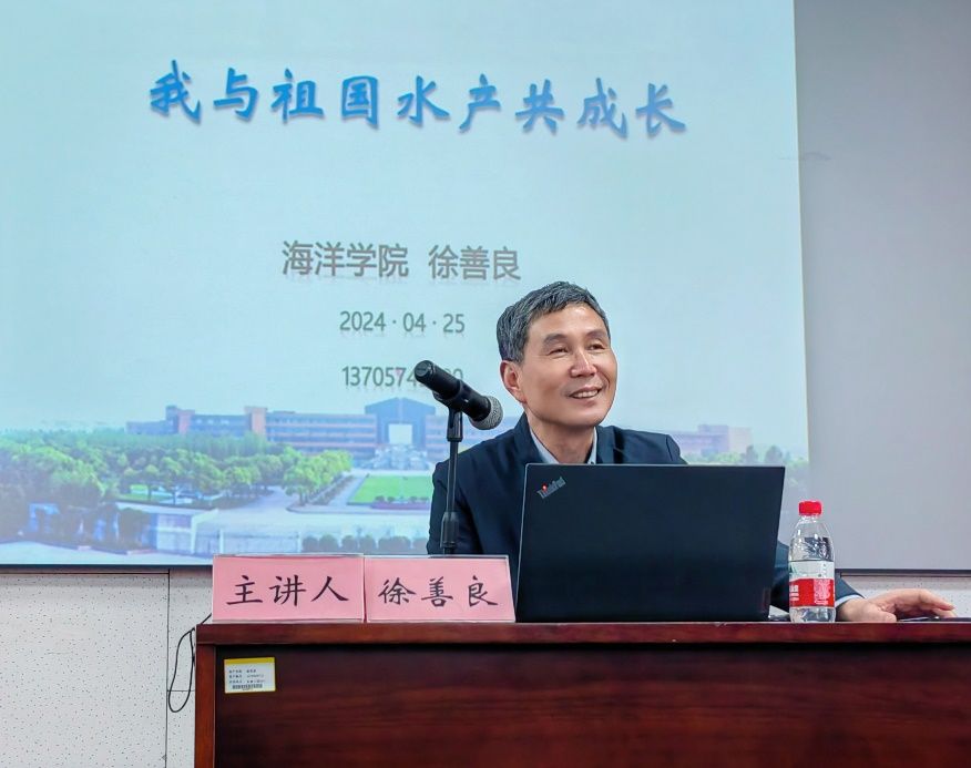 退休教师徐善良教授讲授“我与祖国水产共成长”的故事。学院党委副书记、纪委书记张乐和57名发展对象、47名预备党员参与本次分享会,会议由学工办辅导员王佳老师主持。