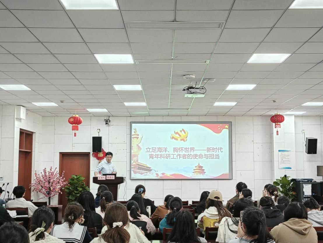 在海洋东楼107教室举办“立足海洋、胸怀世界——新时代青年科研工作者的使命与担当”专题党课。本次党课由学院副院长徐嘉杰主讲,预备党员、发展对象及入党积极分子共同参与学习。