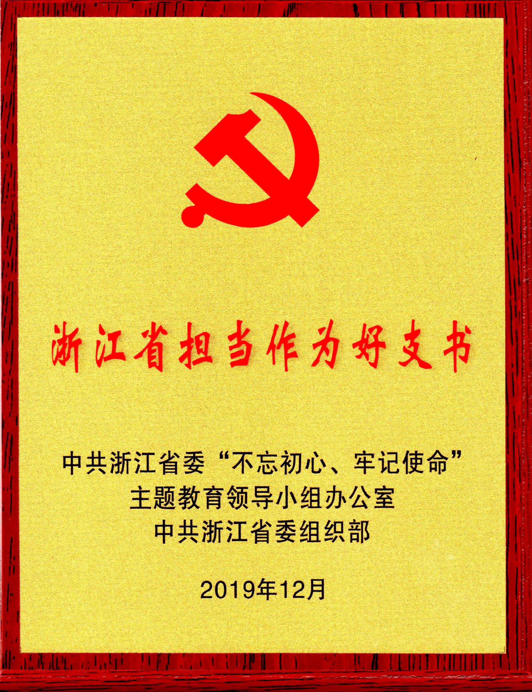 2019年12月,母昌考获评浙江省委组织部颁发的浙江省担当作为好支书荣誉称号