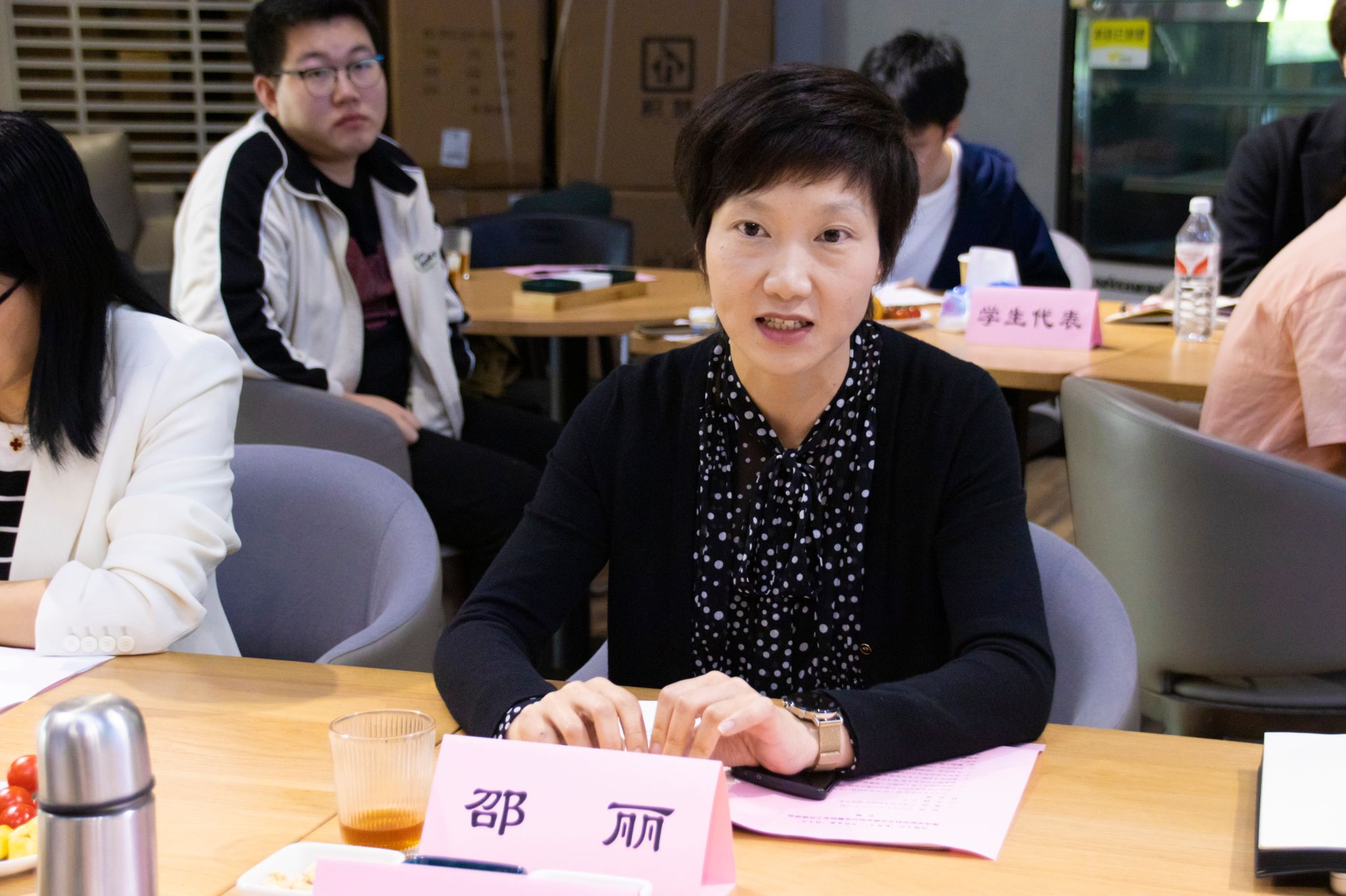 邵丽书记在总结讲话中感谢退休老教师与广大校友在推进学院学科文化建设中发挥的积极作用,强调全院要进一步深化“三个认识”,一是深刻认识习近平文化思想的丰富内涵,二是深刻认识学院学科文化的深厚底蕴,三是深刻认识“文化强院”的重要意义,并结合具体工作推进提出“五个结合”要求,一是“红蓝结合”,要将爱国爱乡的红色文化和向海图强的蓝色文化结合起来;二是校院结合,要将学校鲜明的宁波帮文化与学院独特的学科文化结合起来;三是内外结合,要积极与校园外的行业企业联动,将优秀成人漫画与校园文化结合起来;四是软硬结合,要将文化建设的软件与硬件结合起来;五是挖掘凝练与传承发扬结合,要在挖掘凝练学科文化精神价值的同时,切实将文化优势转化为推动发展的战斗力,强化每一位师生的主人翁意识,凝心聚力,用实际行动推动成人漫画